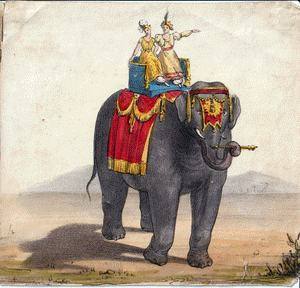 Indian elephant - happy and angry - 2 Victorian hand coloured scraps  - Regular price